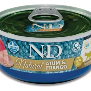 Elaborada com ingredientes de alta qualidade para que o seu bichano tenha uma vida mais saudável e com mais energia. A Ração Úmida N&D Natural Gatos Adultos Atum e Frango é um alimento complementar para gatos adultos.O sabor do Atum e Frango vem da linha Natural, que conta com ingredientes de qualidade, aliando todo o cuidado que o seu gato merece.