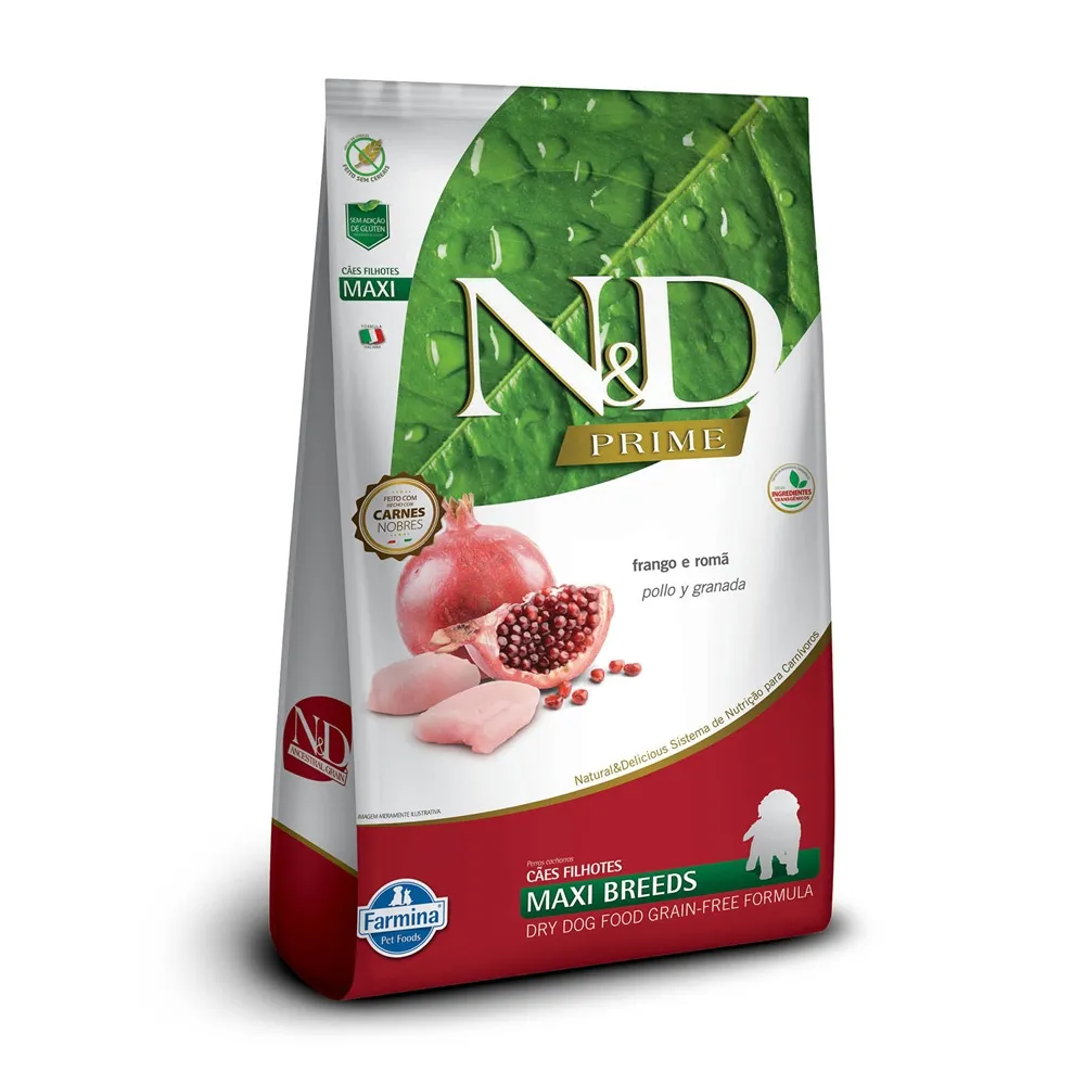 Feita com ingredientes de altíssima qualidade, a Ração N&D Prime Cães Puppy Maxi Frango é uma ótima opção para você que procura uma alimentação natural para o seu cãozinho. Alimento completo e balanceado, feito especialmente para cães filhotes de raças grandes e gigantes.A linha N&D Prime foi baseada no sistema nutricional para carnívoros com 98% das proteínas de origem animal de alto valor biológico e sem cereais. Além de ser ideal para filhotes, também pode ser oferecida para cadelas no terço final de gestação e em lactação.A Ração N&D Prime Cães Puppy Maxi é livre de ingredientes transgênicos e não contém cereais em sua composição, tornando-o um alimento de baixo índice glicêmico, garantindo uma vida mais saudável ao seu cão.