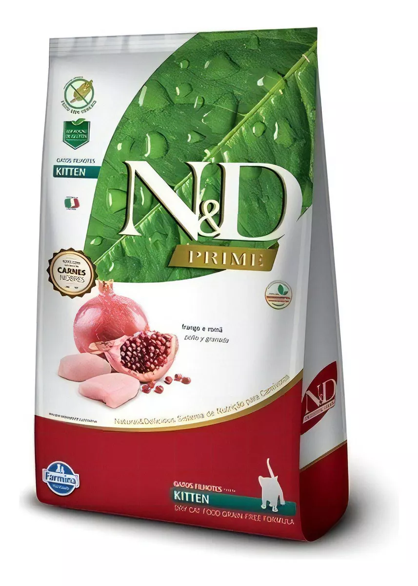 A Ração N&D Prime Gatos Filhotes Frango e Romã é um alimento completo e balanceado, uma das melhores opções disponíveis no mercado para você que deseja um alimento de qualidade para seu pet.Produzida com frango de alto valor biológico, a Ração N&D Prime Gatos Kitten tem ingredientes de altíssima qualidade e é feita sem cereais em sua formulação, o que garante baixos índices glicêmicos. Feita especialmente para gatos filhotes e fêmeas em gestação e em lactação.Elaborada sem ingredientes transgênicos, a Ração N&D Prime Gatos Filhotes tem apenas conservantes naturais. Ajuda a manter a saúde do sistema urinário do seu gato, equilibrando o pH, e contribui para uma pele saudável e uma pelagem mais bonita.