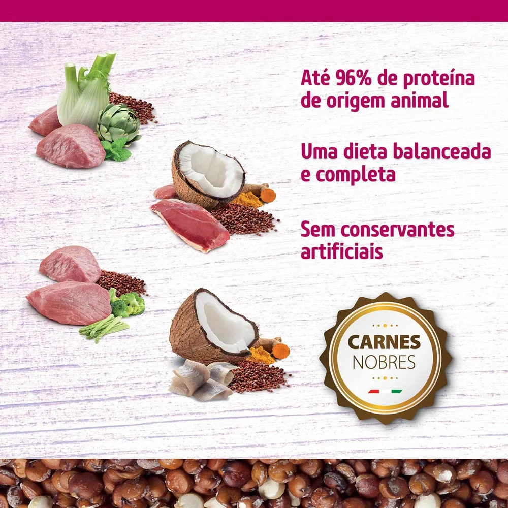 A Ração N&D Quinoa Cães Adultos Skin & Coat Peixe pertence à linha N&D Quinoa da Farmina, que é uma linha de alimentos funcionais para auxiliar no bem-estar dos pets. Feita especialmente para animais com necessidades nutricionais específicas.A Ração N&D Skin e Coat é completa, balanceada e ideal para cães adultos com pele sensível. Possui ingredientes de alta qualidade como peixe, quinoa, coco e cúrcuma, também é rica em ômega-3 que tem efeito anti-inflamatório, além de vitaminas essenciais para a saúde do seu cachorro.A Ração N&D Quinoa Skin e Coat Peixe é feita sem cereais, não contém transgênicos, corantes ou conservantes artificiais e possui quinoa em sua formulação, que tem propriedades nutricionais que favorecem a digestão, a absorção de nutrientes e a saúde intestinal.