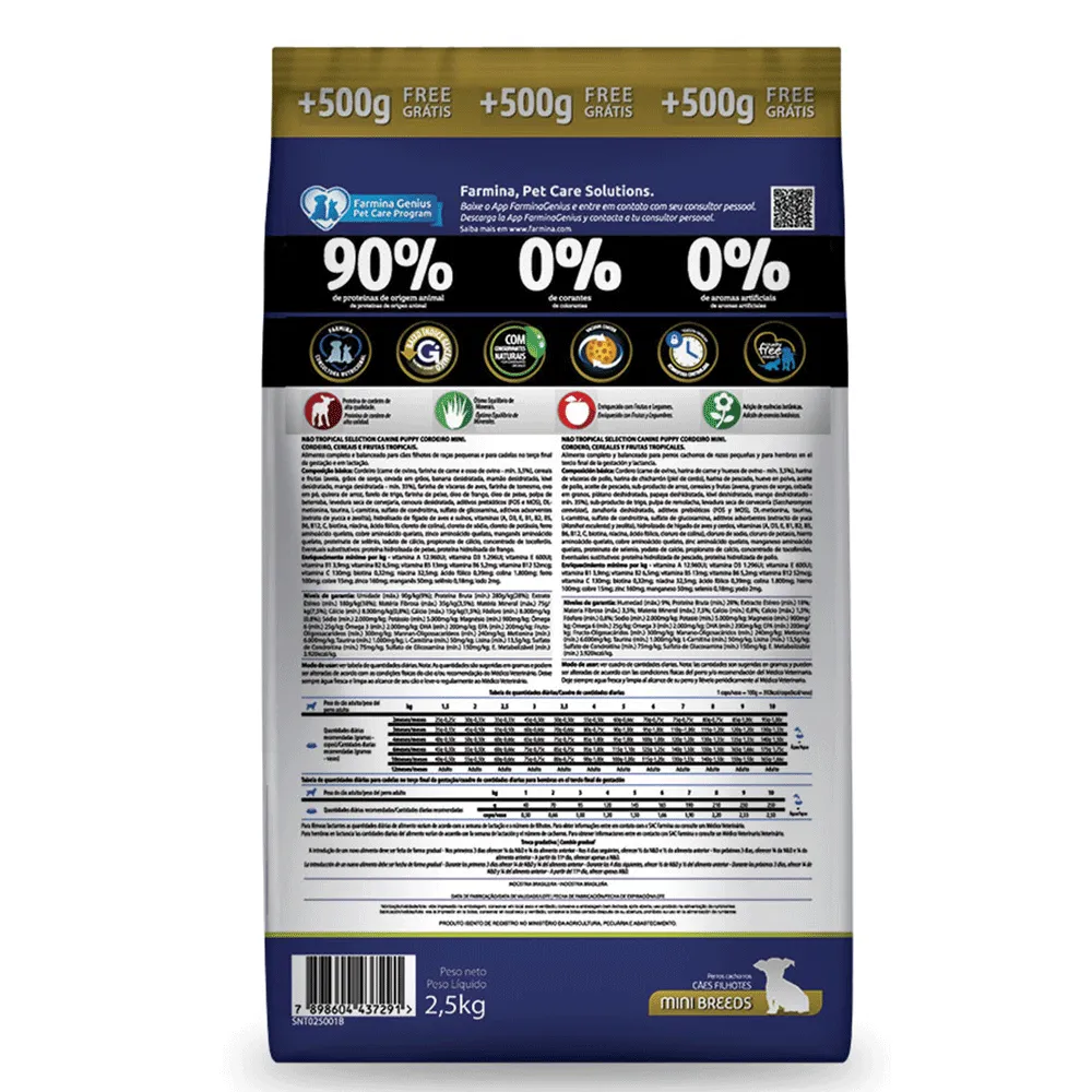 Uma alimentação ideal faz com que os cães cresçam com bastante saúde e qualidade de vida. A Ração N&D Tropical Selection Cães Filhotes Mini Cordeiro é a opção ideal para cães em fase de crescimento e para cadelas no terço final da gestação e em lactação, dando todo o aporte necessário de nutrientes.Feita com ingredientes selecionados com 90% de proteínas de origem animal, a N&D Tropical Selection conta também com frutas tropicais em sua composição e cereais ancestrais, que juntos, dão mais saciedade, têm a ação antioxidante e são uma excelente fonte de vitaminas e minerais.
